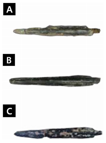 Bronze Swords from Sinpung Site in Wanju. (A)Ga-53, (B)Na-4, (C)Na-23[9,10].