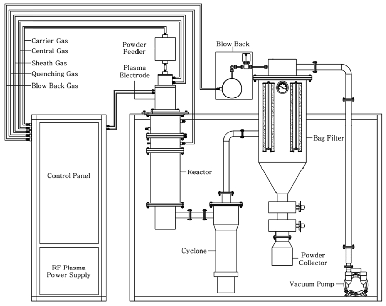 The RF induction thermal plasma system consisted of an RF power supply (30 kW, 4 MHz),