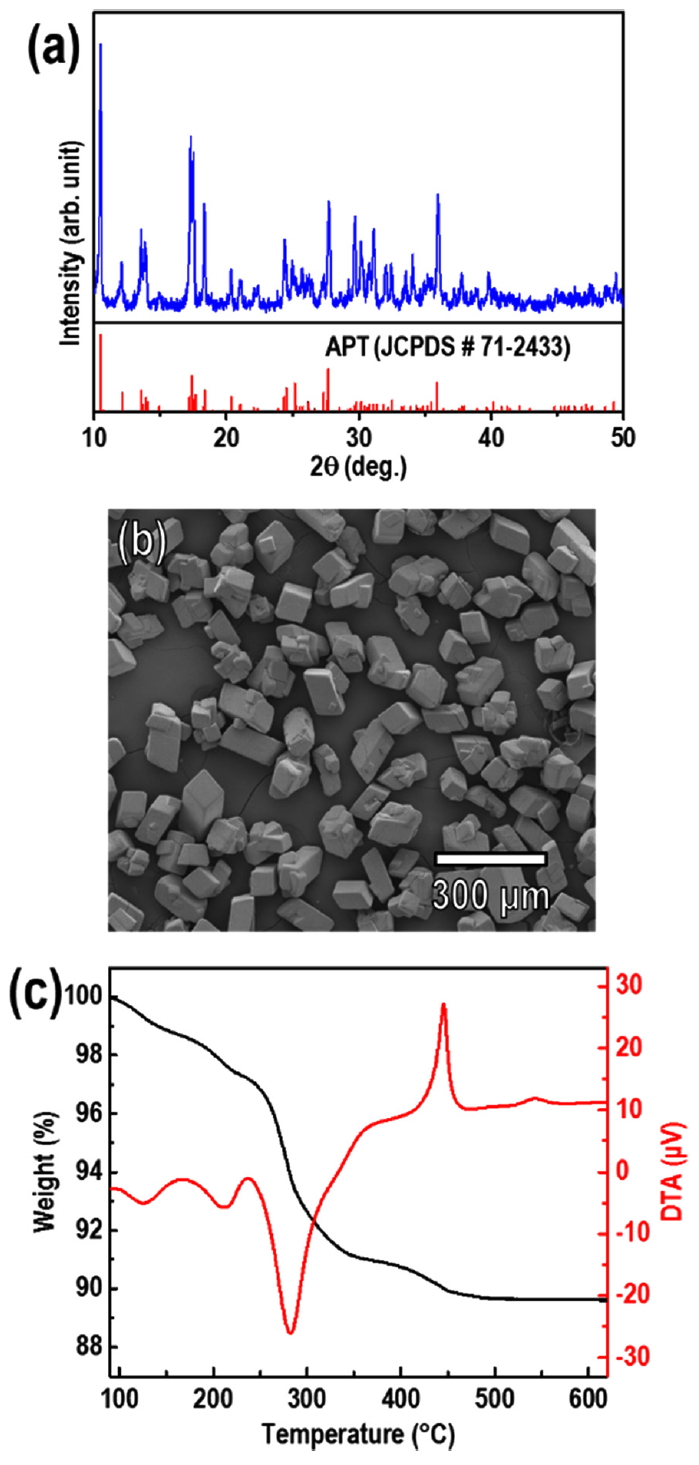 Commercial ammonium paratungstate (APT; (NH4)10H2 W12O42(H2O)4, Ganzhou Grand Sea W&Mo Group Co., LTD) powder and commercial WO3 powder (Ganzhou Grand Sea W&Mo Group Co., LTD) was used without further purification