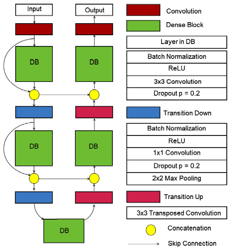 Structure of FC-DenseNet neural network.