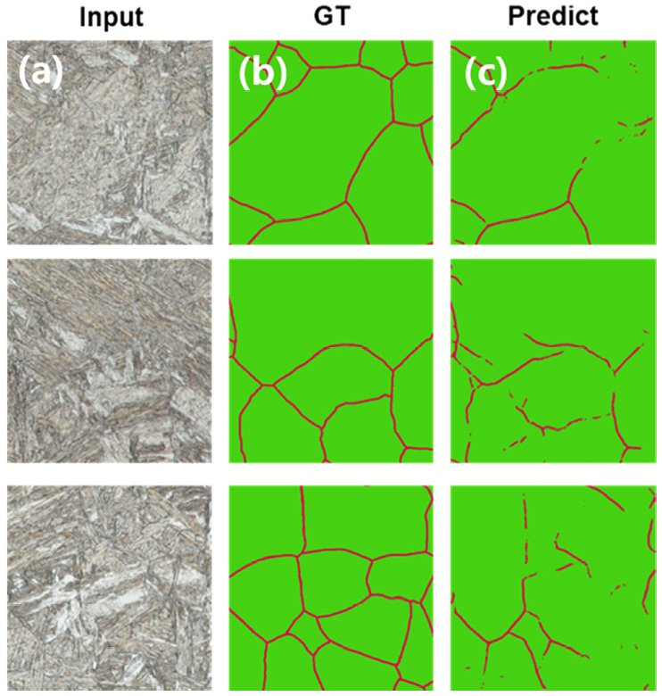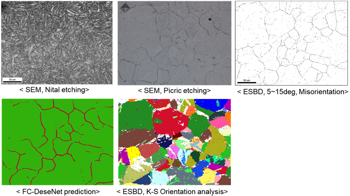 조직 상에서 래스들이 배열되는 패턴 사이로 구오스테나이트의 결정립계가 드러나게 된다는 것이다. 이것을 기계학습의 이미지 분할 기법과 연결 지어 생각하면
