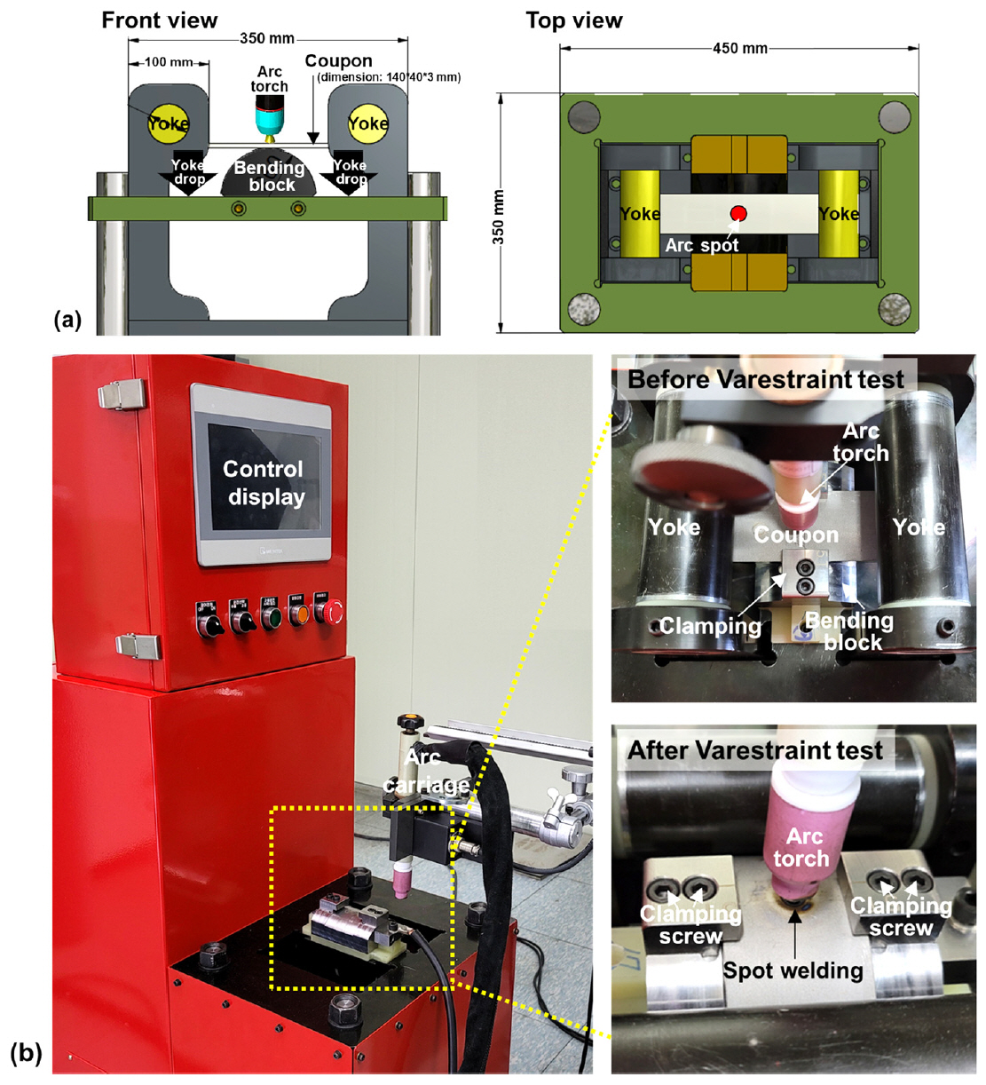 40 × 3 mm 이다. 시험편의 정중앙에 아크 점 용접(arc spot welding)을 10초간 실시하고, 용접 종료와 동시에 굽힘응력을 부가하여