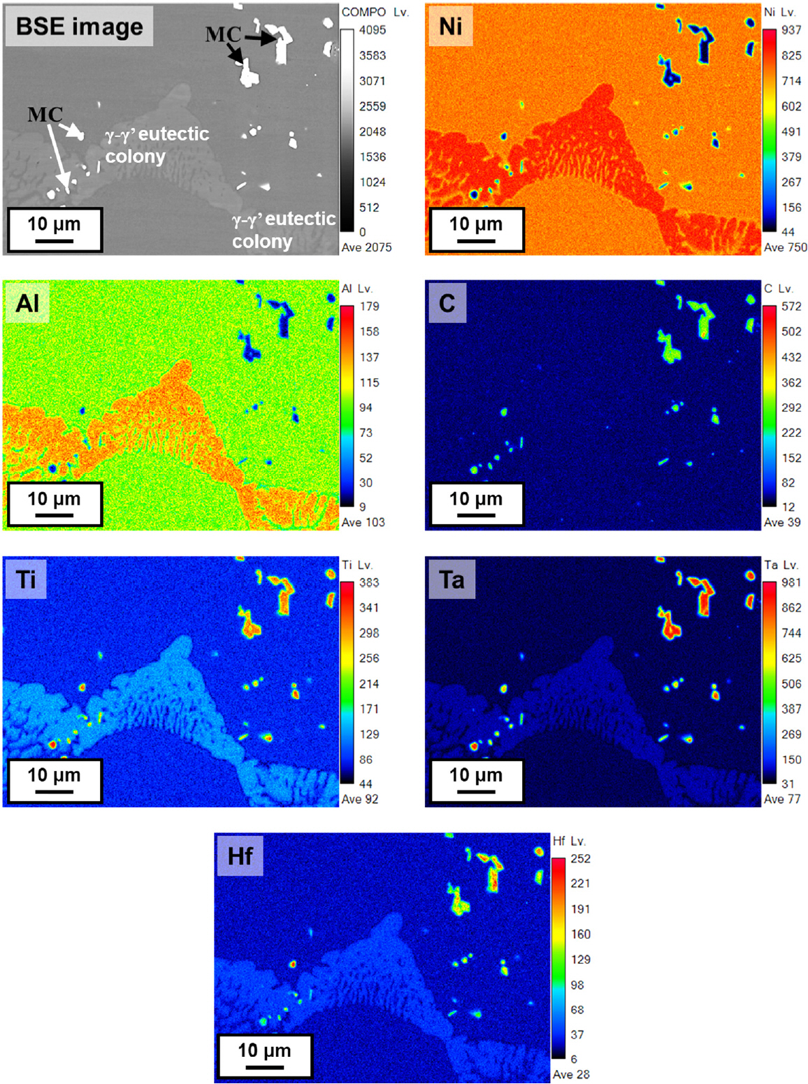 Representative chemical composition analyzed by WDS for γ/γ’ eutectic colony region