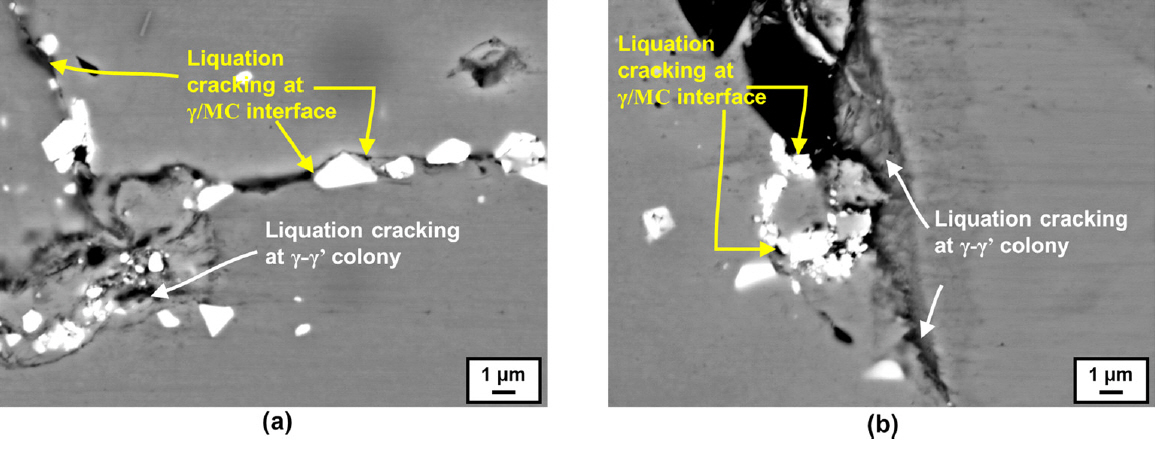 것으로 보고하였다 [20]. 뿐만 아니라 Inconel 939 [21], MAR-M004 [22], Rene 80 [23] 등, 다양한 석출경화형 초내열합금에서 열영향부 액화균열 현상이 보고되고 있다.