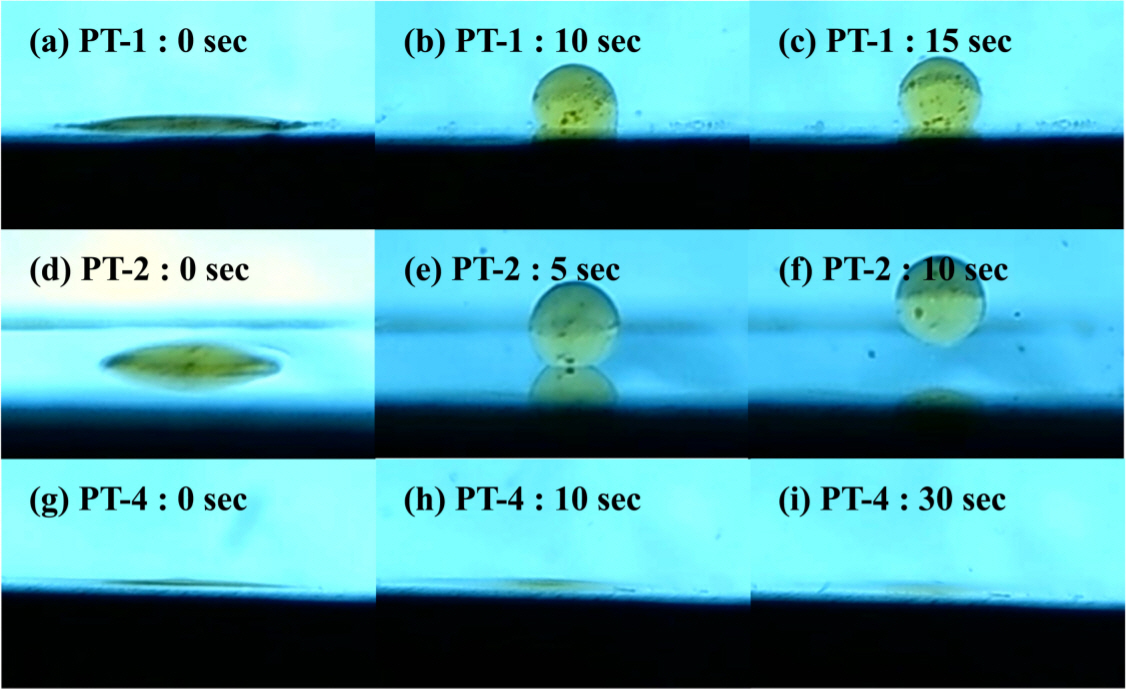 afterwards. On the other hand, with PT-4 the contact angle became smaller and oil
