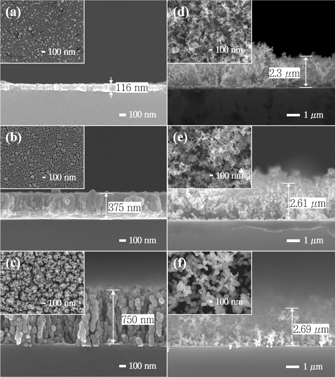 film to a highly porous structure through a columnar structure as the pressure increases.