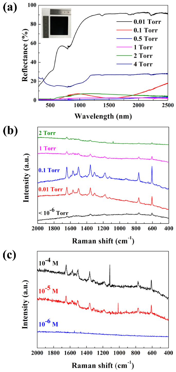 structure grown at 0.1 Torr exhibited the highest SERS activity for the R6G molecules,