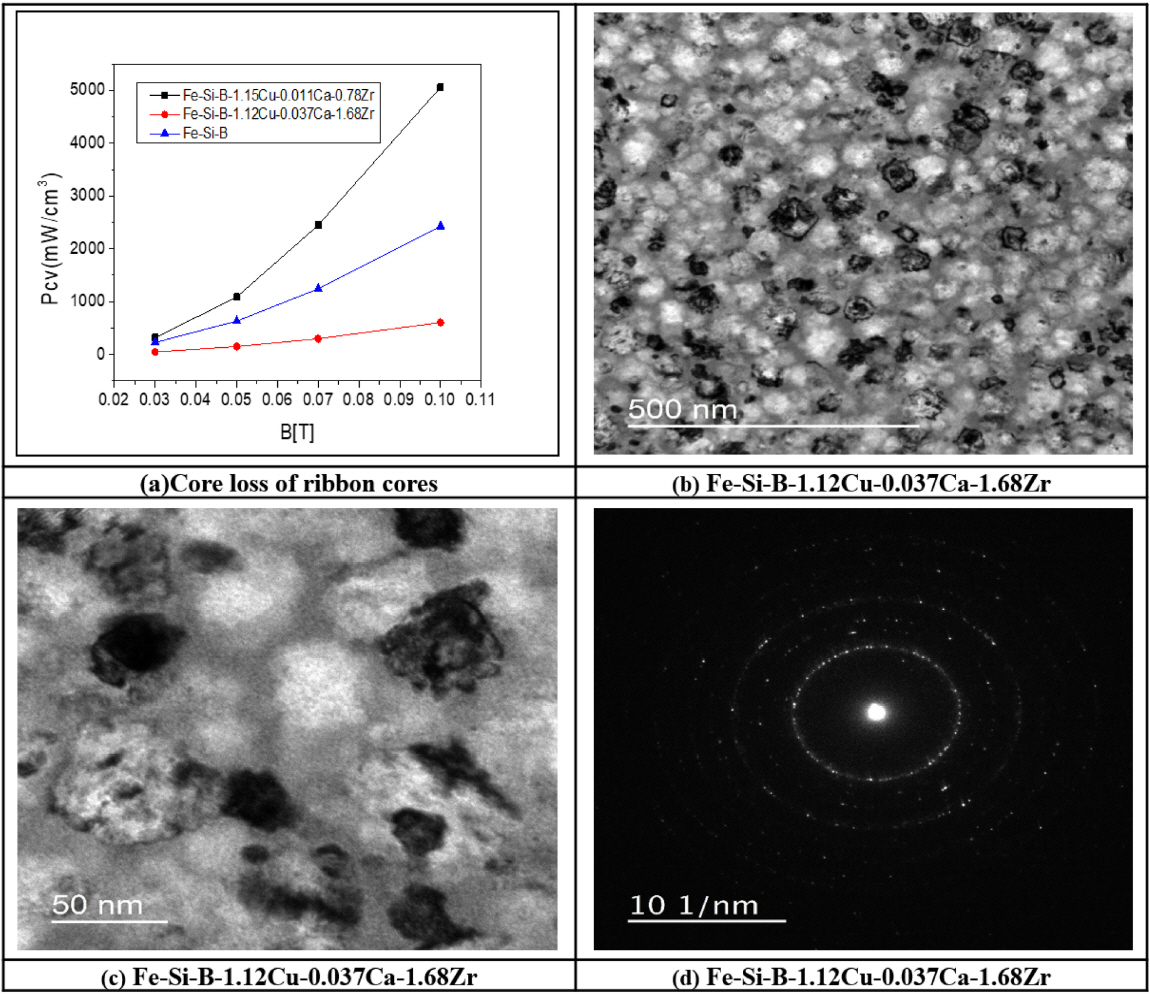 분석되는데, 이 합금리본코어의 코어로스(Core loss) 감소는 첨가된 Ca이 결정립계에 분포하여 절연역할을 함으로써 전기저항이 증가하고, Zr의