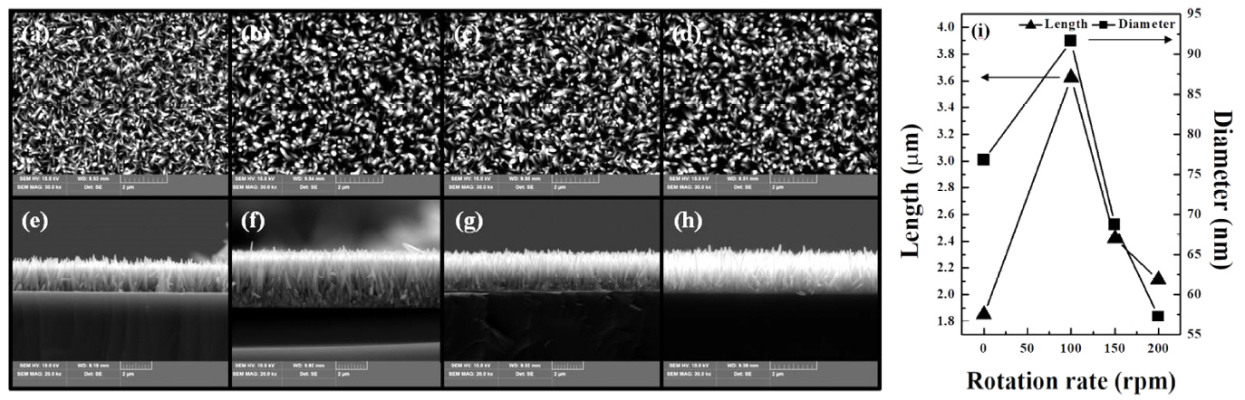 The changes in the diameter and length of the ZnO NRs with increasing rotation rate