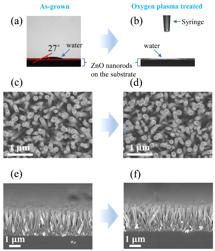 measurements showed that the hydrophilicity of the ZnO nanorods was increased by oxygen