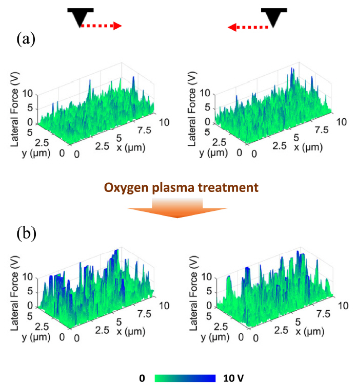 LFM signal level (10 V) increased significantly after the oxygen plasma treatment.