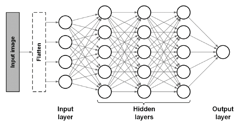 Schematic structure of artificial neural network for image classification.