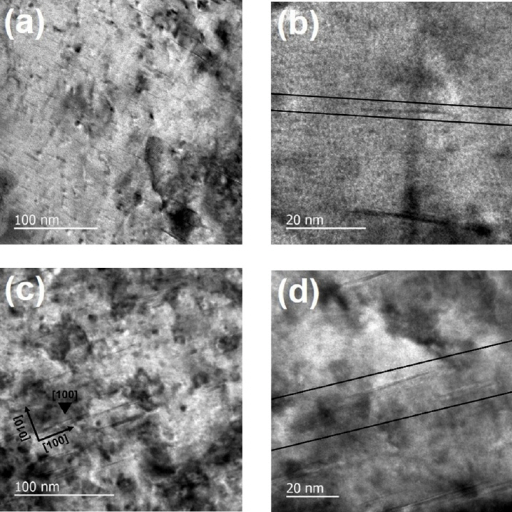 구별되며, 이를 그림 2에 나타내었다. 약 쌍 전위 관계는 석출물의 크기가 작아 석출물이 선행 전위와 후행 전위 사이에 존재할 때 나타나는 현상이다. 석출물의 크기가 작아