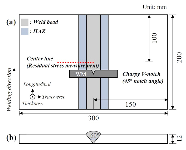 300 mmw × 200 mml × 12 mmt (two plates 150 mm wide were joined), which had a 60 ° V-groove geometry. Welding