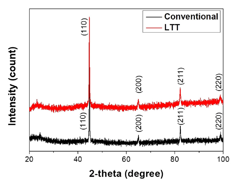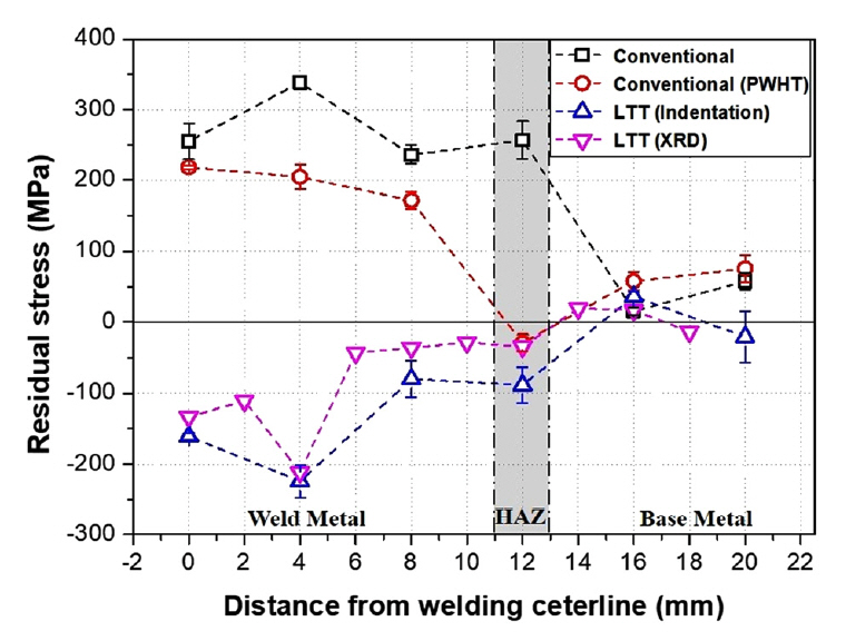 The residual stress of the LTT welding coupon was measured using X-ray diffraction