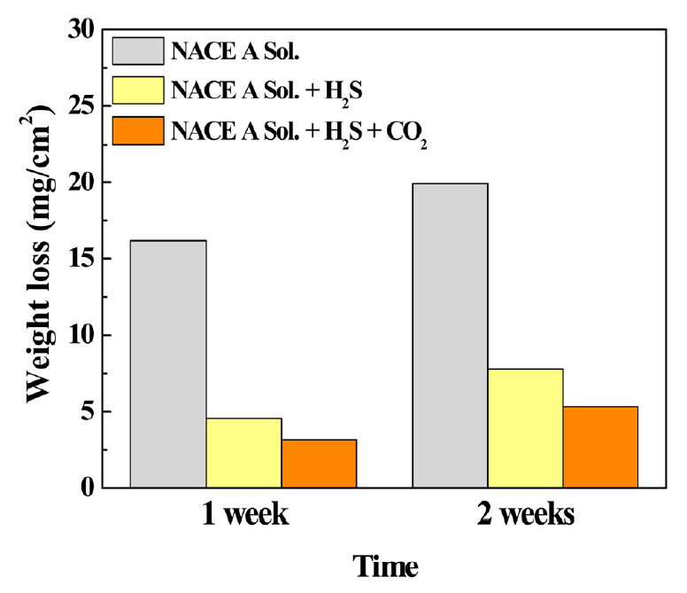 따라서, 본 연구에서는 NACE 규격용 실험용액을 기반으로, 미량의 H2S가 포함된 조건과, H2S와 함께 CO2가 복합적으로 존재하는 각 조건에서의 부식거동과 함께 부식 반응에 의해 생성된 수소원자의 침투거동을 비교·분석하여 메커니즘을 해석하고자 하였다.