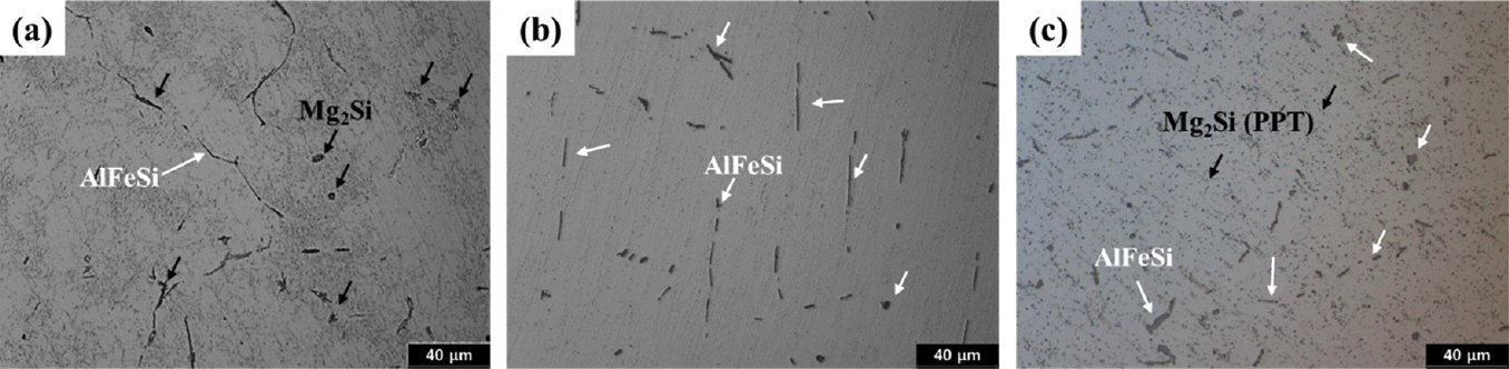 Al-Mg-Si 합금에서 대표 적인 금속간 화합물인 Mg2Si상은 합금의 물리적/기계적 특성에 주요한 영향을 미치는 것으로 알려져 있다 [6,7]. Mg2Si상은 Mg과 Si이 원자비 2:1로 결합하여 형성되며, 용체화 및 시효 처리를 통해 고용 및 석출 반응을 제어할 수 있다. 용체화 처리에 의해