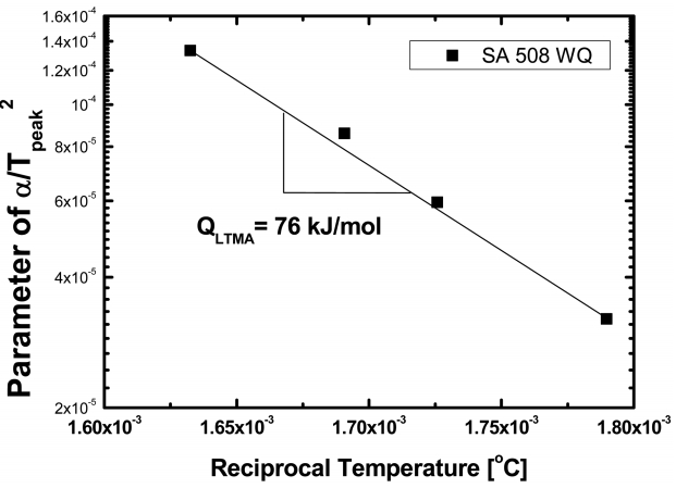 Parameters of determination of activation energy for exothermic reaction in WQ SA508.