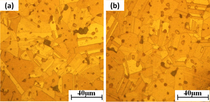 OM images of (a) PM Cu and (b) 3Di Gr-Cu composite after HAC experiment.