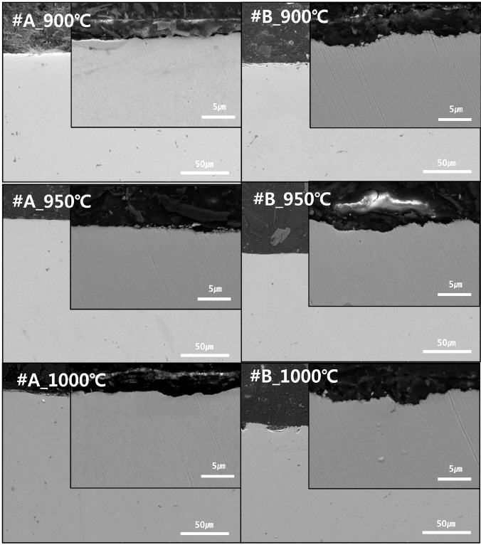 for one minute in a high-temperature atmosphere at 900, 950, and 1000 °C, followed
