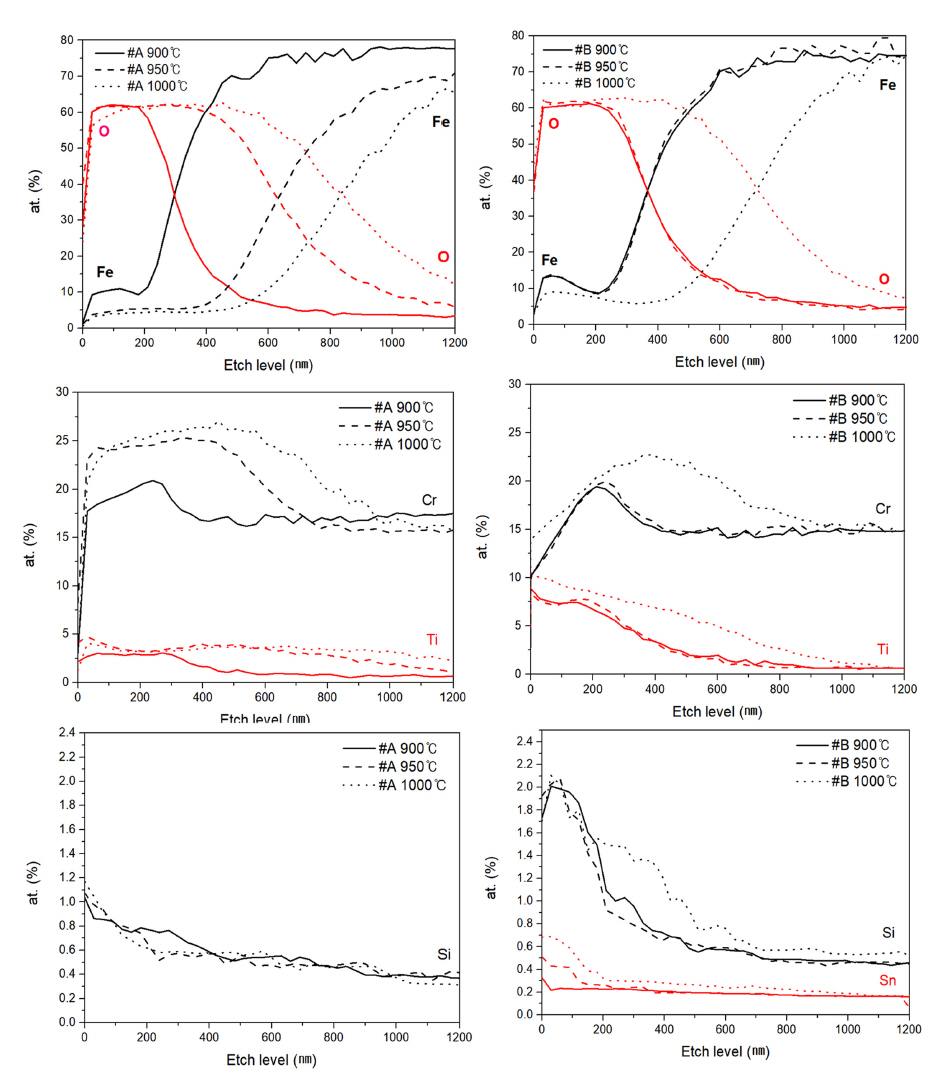 of AISI 439 ferrite stainless steel samples are illustrated in Table 1, with (#A) containing 17 wt.% Cr and stainless alloys (#B) containing 15 wt.% Cr,
