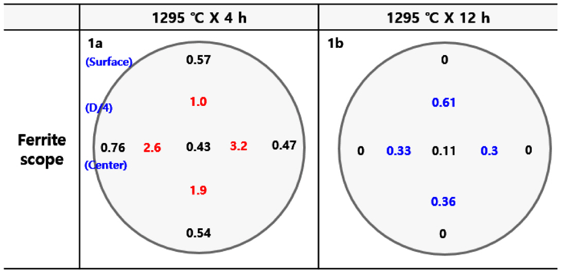 with respect to the delta-ferrite content. The temperature was set at 1295 °C to check