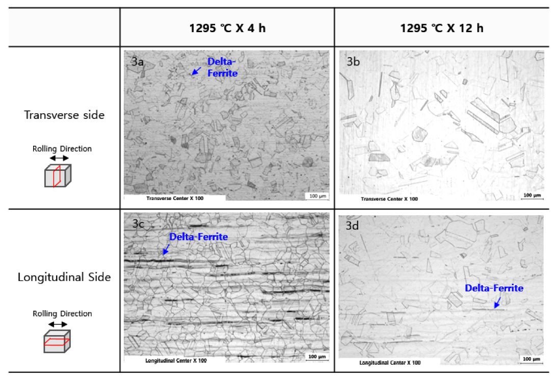 were performed to confirm the effects of delta-ferrite. Delta-ferrite was also analyzed