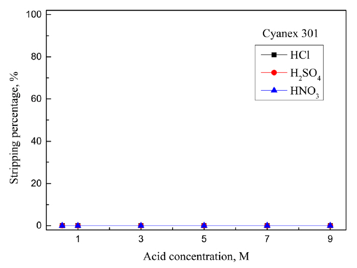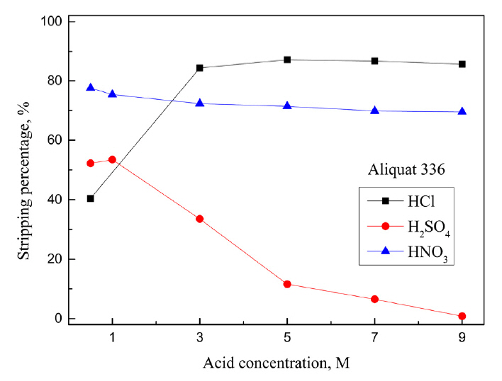 336의 경우 용매추출시 제 3상의 형성을 억제하기 위해 개질제로 10%의 1-decanol (Daejung Co., >98%)을 첨가했다. 탈거용액은