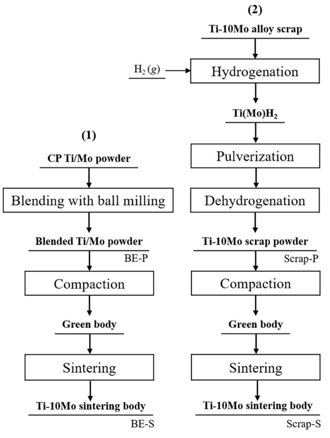 Figure 1 shows the flow chart of the experiment process. Ti-Mo alloy scrap was obtained by