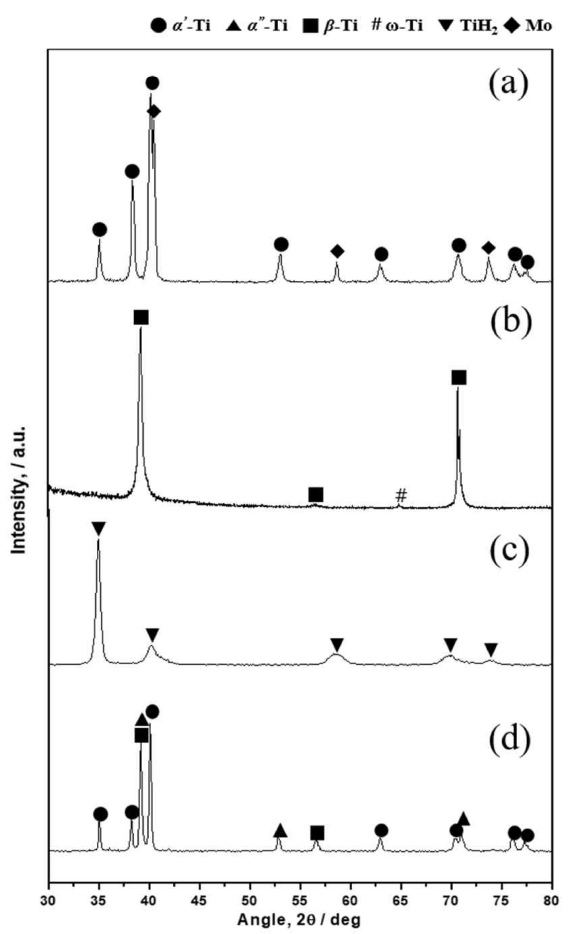 the powdering process by HDH, and using the blended elemental method (Fig 3). BE-P (Fig 3(a)) shows a mixed phase of α'-Ti and Mo without mechanical phase transformation from