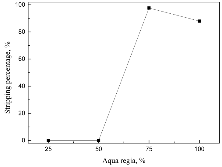 Effect of aqua regia concentration on the stripping percentage of Pd(II) from the