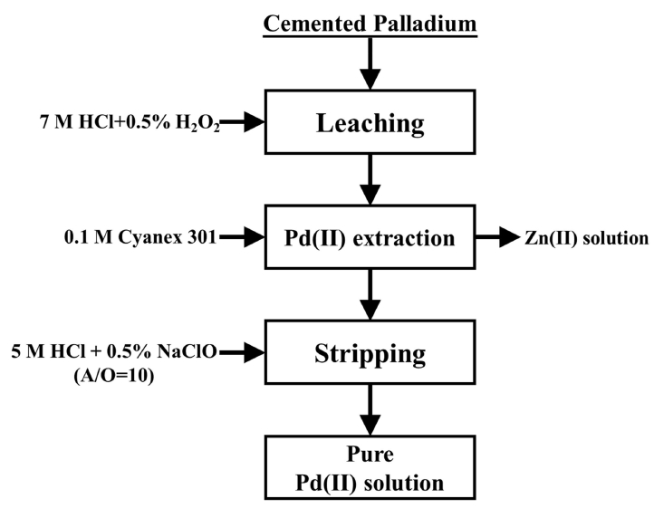 A flow sheet for the recovery of pure Pd(II) from the cemented Pd produced by cementation