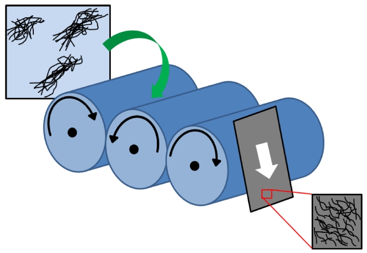 이용하였다. 3-roll-milling 공법은 고함량의 나노 필러를 매트릭스 속에 성공적으로 분산시킬 수 있지만, 강한 전단력을 이용해 분산시키는