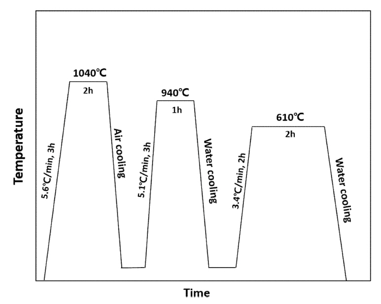 시험의 열처리 공정 개략도를 그림 1에 나타내었다.
