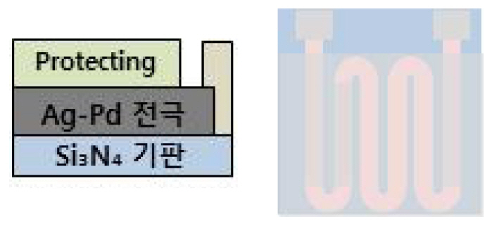 전극층의 소재는 저항이 낮고 질화규소 기판과 접합성이 뛰어난 Ag-Pd를 사용하였다. 하지만 넓은 전극패턴에서는 너무 낮은 저항으로 쇼트가 발생하였고
