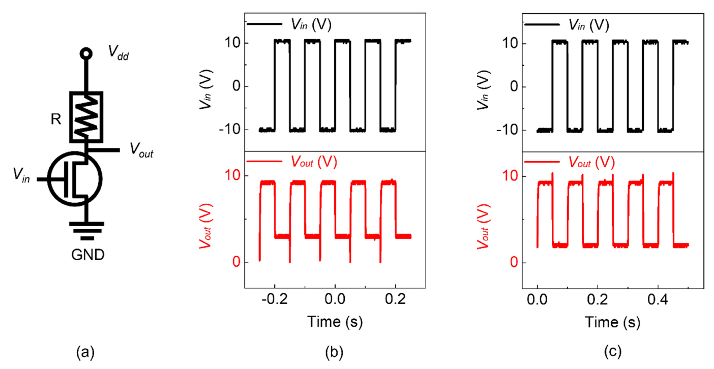 또한 1 MΩ의 저항을 가지는 resistive load type inverter 회로를 구성하여 device switching 특성을 분석하였다.