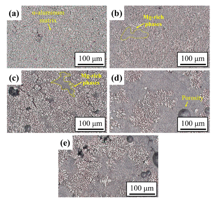 Equilibrium phase diagram of Al 5052 alloys (JMatPro software).