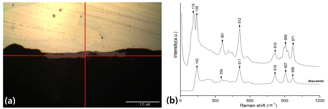 실시하지 않고 RRUFFTM Project의 데이터와 선행연구의 청동 부식생성물에 대한 라만 분광 분석 데이터와 비교하였다.