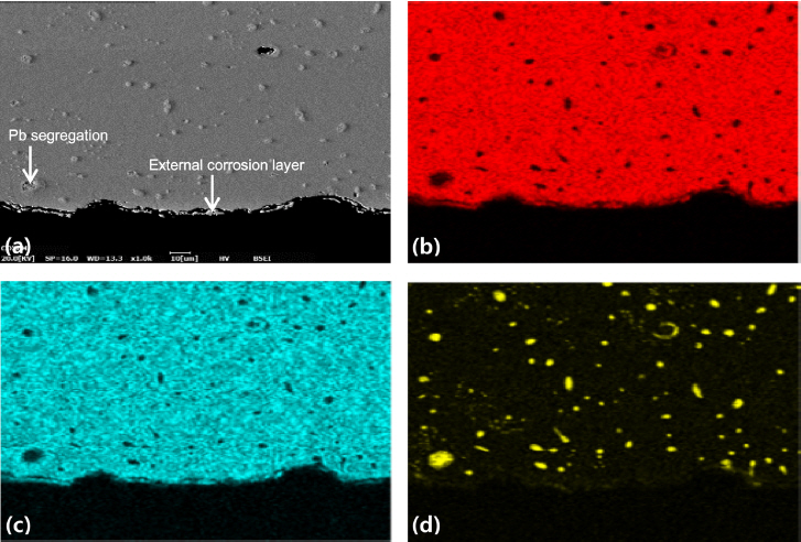 달리 부식실험에서는 조직 내부의 Pb 이온이 빈 공간으로 이동과 환원할 수 있는 분위기로 전환되지 않아 Pb 계열 부식생성물 형성에 어려움이 있는