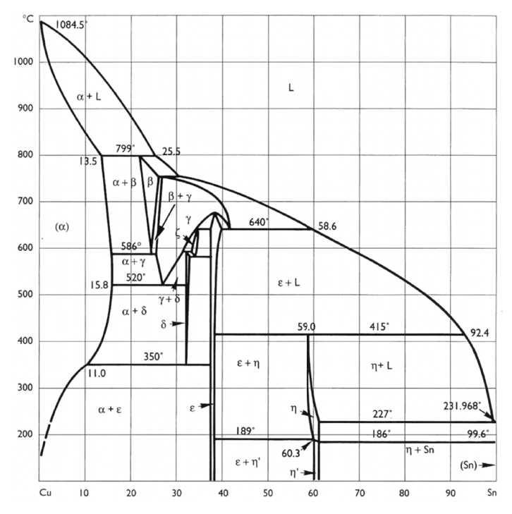 차이로 인한 것으로 판단된다. Cu-Sn 상평형도를 살펴보면 청동은 Sn 함량이 약 10 wt%을 넘을 경우 취성이 높은 δ상을 생성하게 되어 Sn