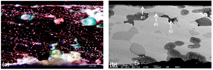 층위의 형태와 색상을 확인하고자 시료를 에칭하지 않고 광학현미경(EPIPHOT 200, NIKON, Japan)의 암시야(Dark Field)로 단면