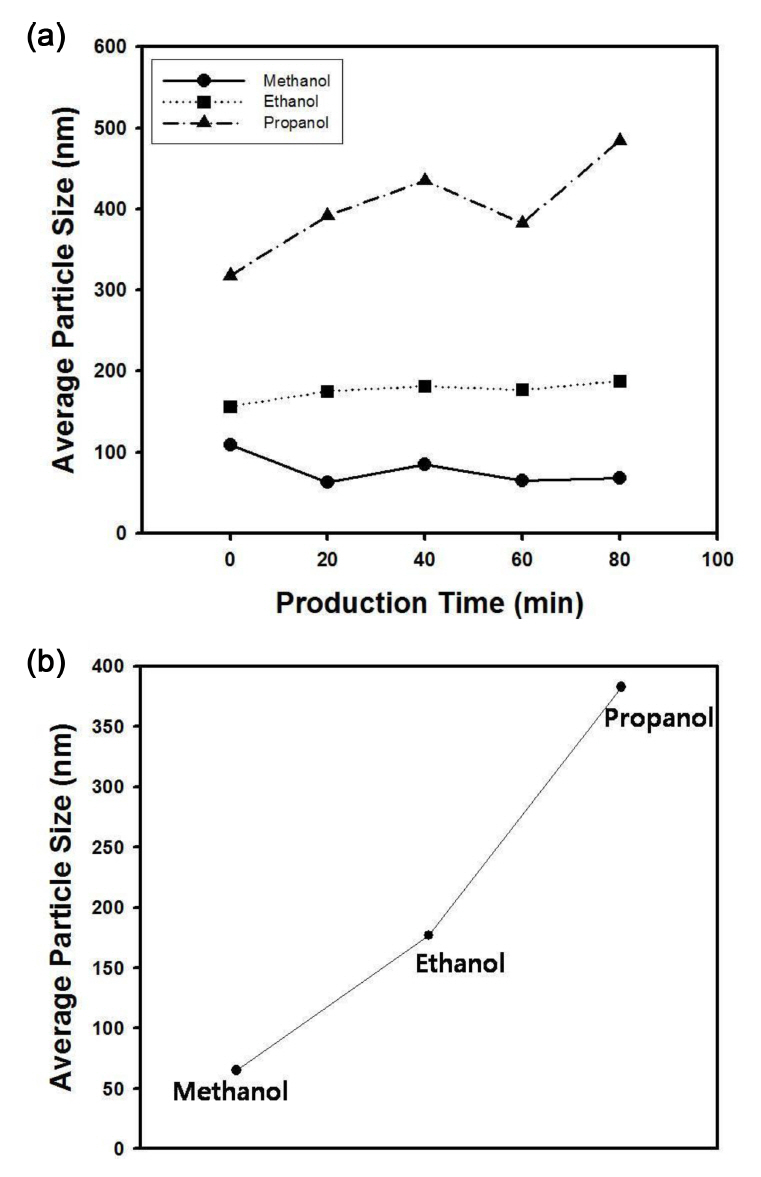 in the graphs of Figure 11(a). The particle size increased with the molecular weight of alcohol increased from