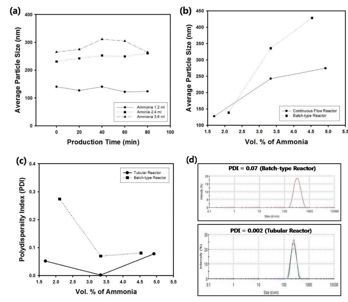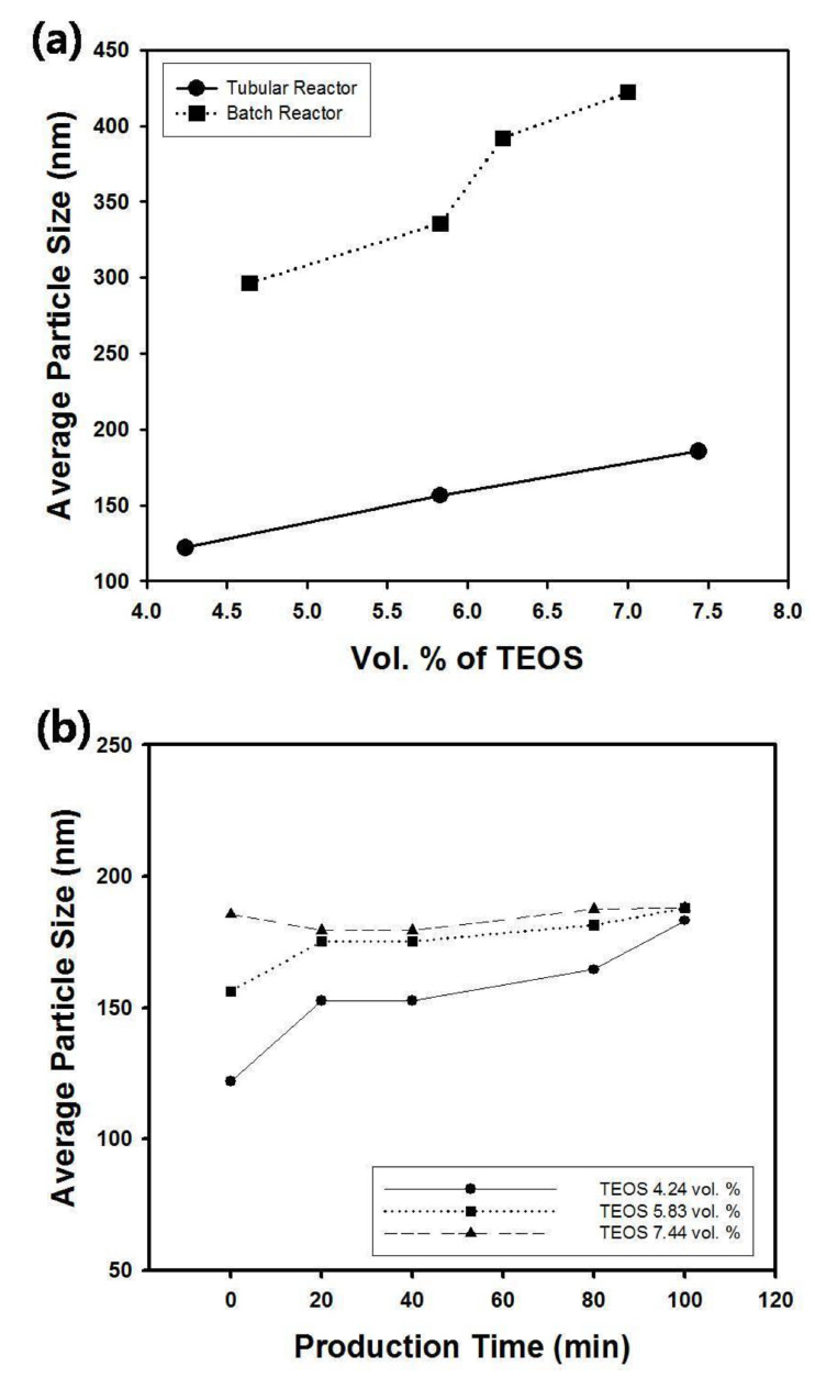 Figure 1(a) contains the average size of silica particles synthesized using batch-type reactor