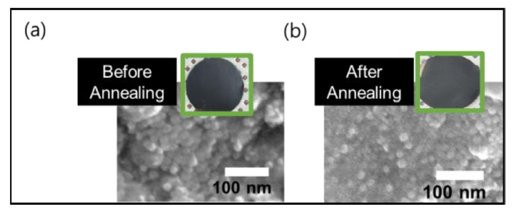 실제로 그림 6에 나타낸 EPD 전극의 열처리 전과 후의 비교를 통해서도 표면 SEM 이미지에서 뚜렷한 차이는 관찰되지 않았다. 이는 모폴로지에 의한 변화를 통한