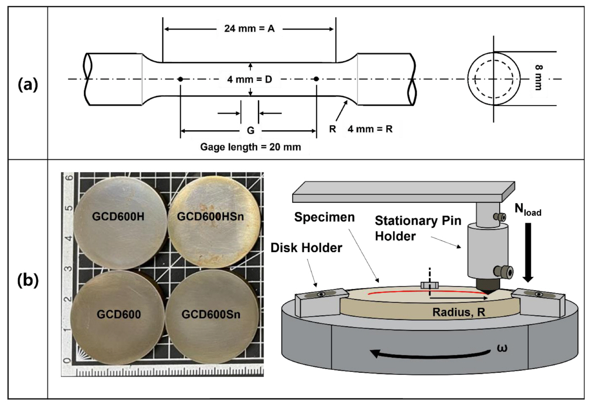 were labeled as GCD600 (as-cast state testing material), GCD600Sn (Sn-added testing