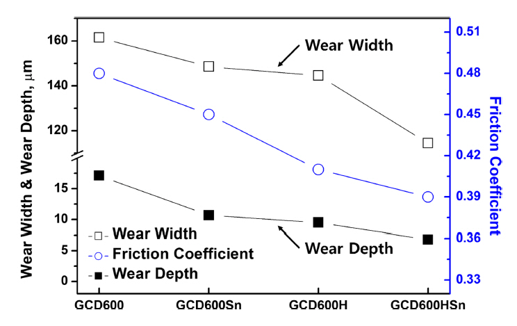 the GCD600HSn sample exhibited the largest average friction coefficient value. Similarly,