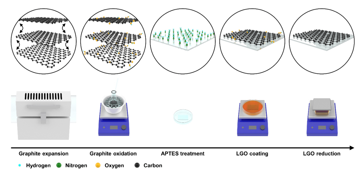 본 연구에서는 대면적의 산화그래핀(large-sized graphene oxide, LGO)을 합성하여 용액 공정으로 유리 기판에 직접 코팅하였으며,