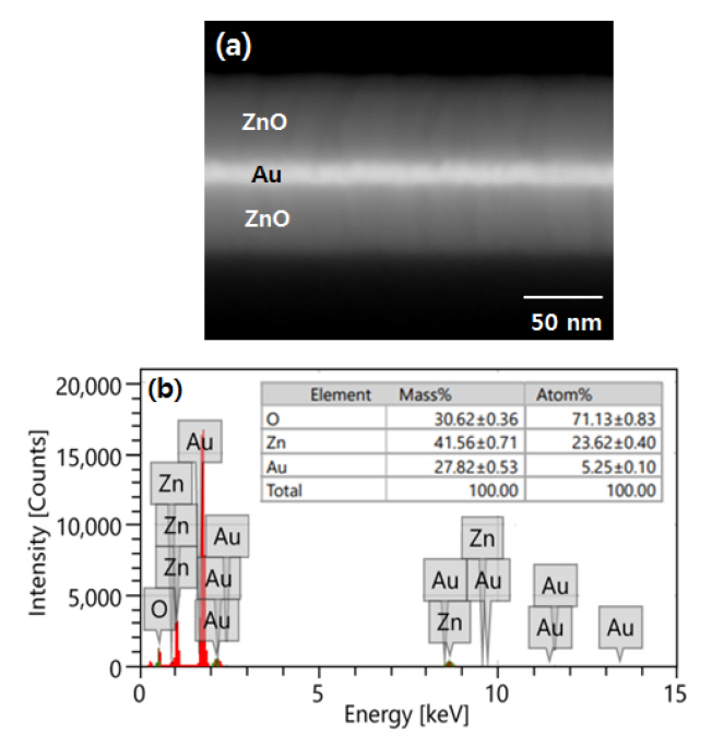 Fig 1(a) and (b) show a cross-section image of the ZAZ film, and the results of component analysis