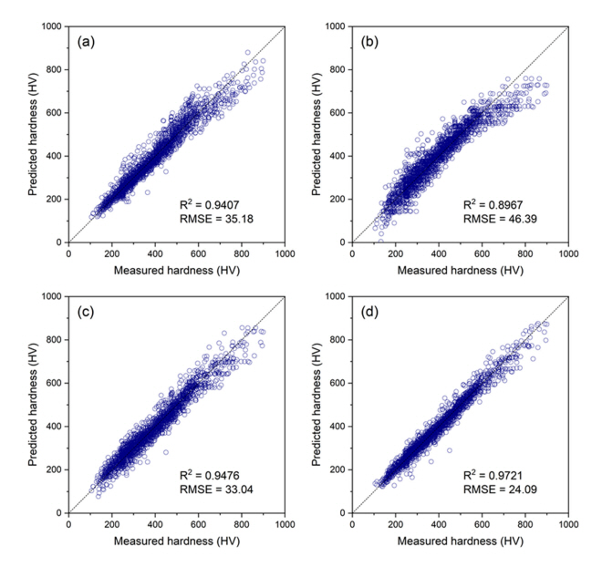 prediction accuracy, model complexity, machine learning, model regression, tempered martensite hardness