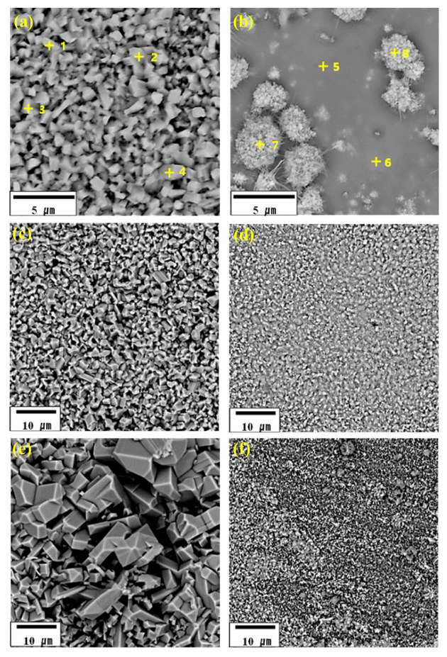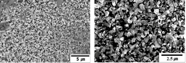 그림 2는 Ti 4822 합금의 팩 세멘테이션 코팅 후 표면 SEM 이미지이다. 그림 1의 산화 시편의 표면 SEM 이미지와는 달리, 표면부에 조대한 육각형의 TiO2 결정립이 생성되지 않았음을 알 수 있다. 또한 C Boonruang et al. 의 연구에서 Ti-52 at% 합금 표면에 형성된 TiC carbide와
